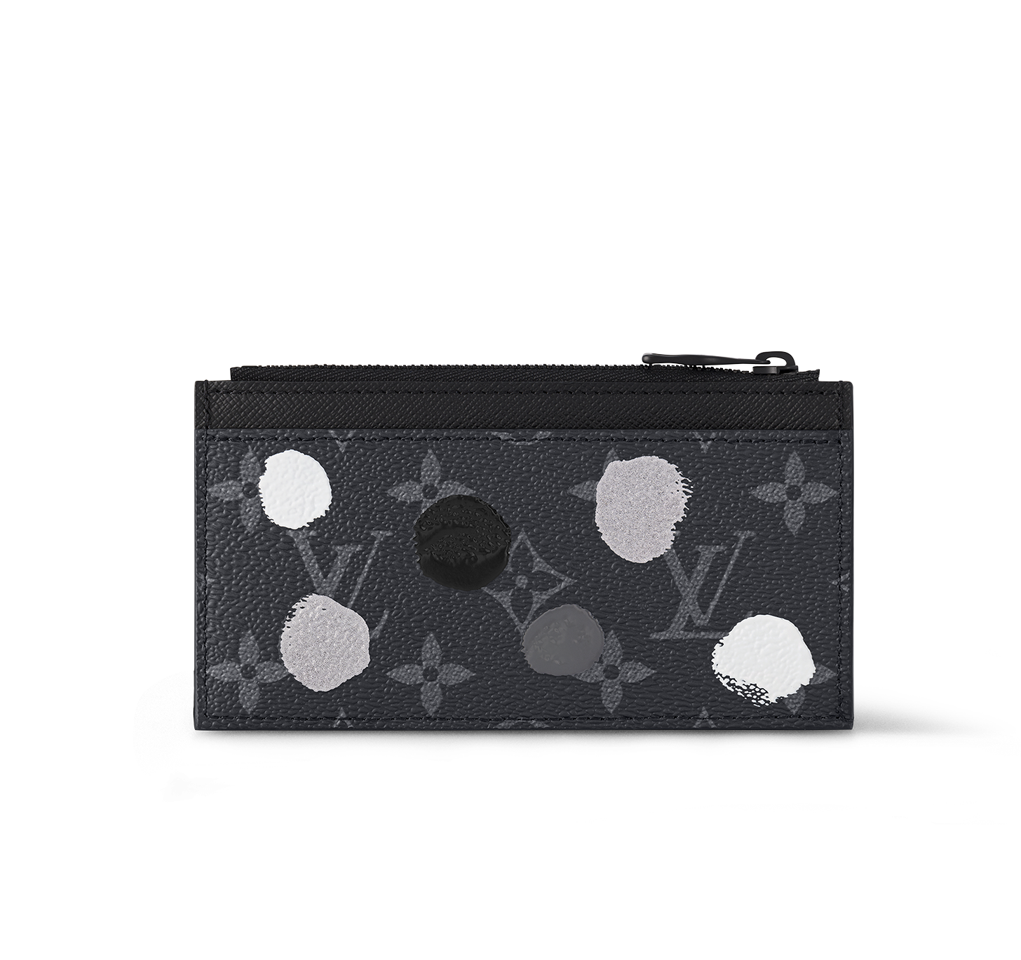 LVxYK 硬幣卡包為全新聯乘草間彌生系列。這位受人尊敬的日本藝術家長期以來一直痴迷於圓點,在她的作品中使用圓點來表達內心情感。男裝的黑白灰圓點配上LV的經典老花,時尚感滿滿,亦不過於花巧。