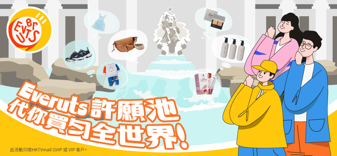 只要你係HKTVmall GVIP 或 VIP 客戶,於2023年3月27日至4月10日喺Everuts 誠心許願,同代購專員講低你想買嘅嘢,多達千位當地嘅代購專員就會出動幫你搵貨!如果喺4月17日或之前仲未有代購專員報價,Everuts 許願池就會畀返100 E-Coins俾你下次消費用!